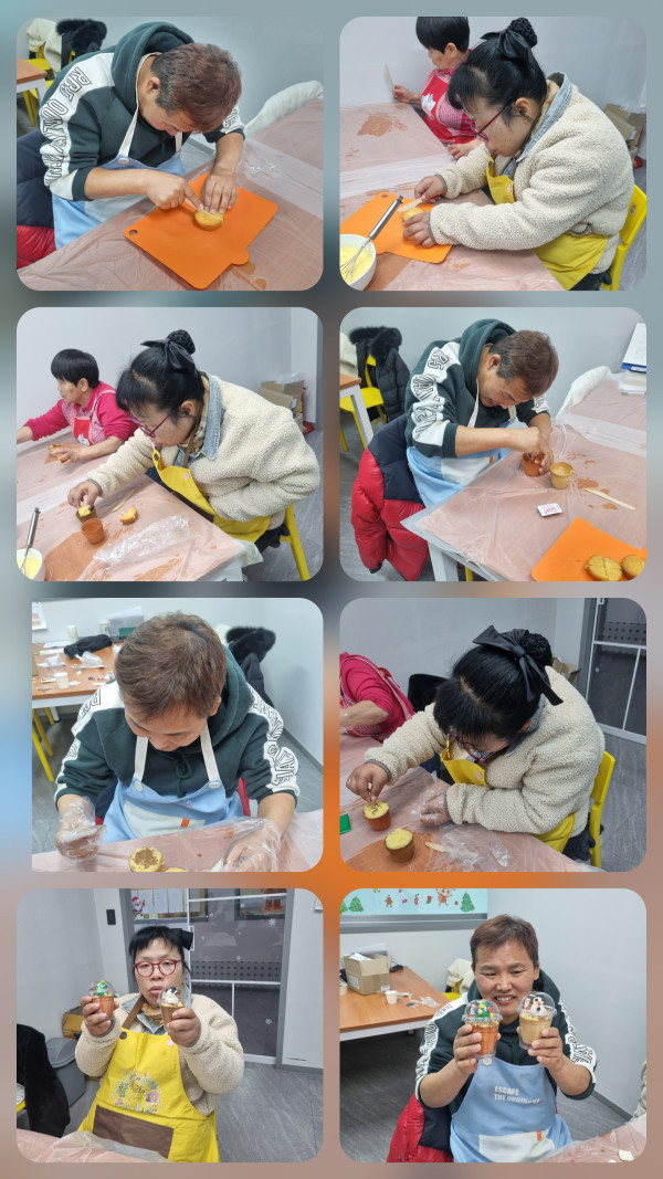 2025. 12. 23(화)주간활동서비스 4그룹 활동진행 페이지 정보 조회 : 187회 작성일 25-12-24 00:49 SNS 공유 : 본문 오전 다음주 생일인 다른이용자 생일카드만들기 활동하고 보석십자수로 키링만들기 활동후 어댑핏활동으로 근육들을 풀고 복근운동하고 왔어요 오후에는 다양한재료를 이용하여 맛있는 케익만들기를 했어요 이전글2025.12.24(수) 주간활동서비스 3그룹 활동진행 25.12.24 다음글2025.12.23(화) 주간활동서비스7그룹활동진행 25.12.23 목록