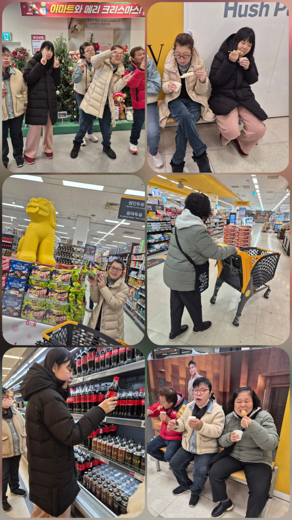 2025.12.15(월)주간활동서비스 1그룹 활동진행 페이지 정보 조회 : 300회 작성일 25-12-15 19:19 SNS 공유 : 본문 오전 이마트 방문하여 둘러보고 필요한 물건 구입하고 이용자 생일선물도 미리 구입했어요 오후 볼링장에서 게임했어요 스트라이크 기록한 이용자에게 박수를 쳐주며 함께 기뻐했어요 이전글2025.12.15(월)주간활동서비스7그룹 활동진행 25.12.15 다음글2025.12.15(월) 주간활동서비스 2그룹 활동진행 25.12.15 목록