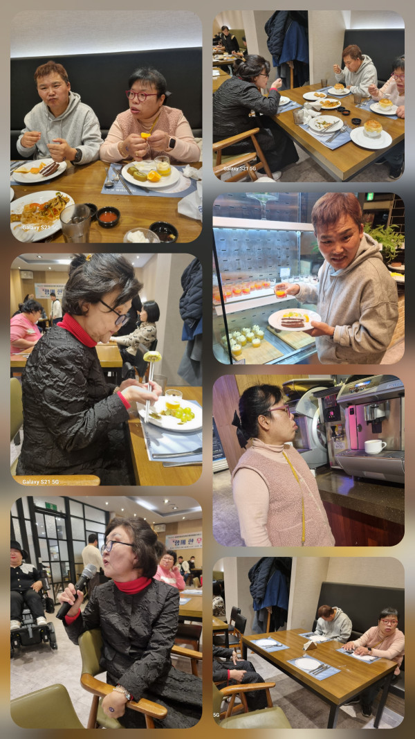 2025. 12. 11(목)주간활동서비스 4그룹 활동진행 페이지 정보 조회 : 309회 작성일 25-12-11 17:49 SNS 공유 : 본문 오전오후 사업평가회를 참여하여 한해 동안 가장기억에 남는 활동과 내년에도 하고 싶은 활동들에 대해 이야기 나누고 맛있는부페에서 즐거운 하루를 보내고 왔어요 이전글2025.12.12(금) 주간활동서비스 3그룹 활동진행 25.12.12 다음글2025.12.11(목)주간활동서비스 1그룹 활동진행 25.12.11 목록