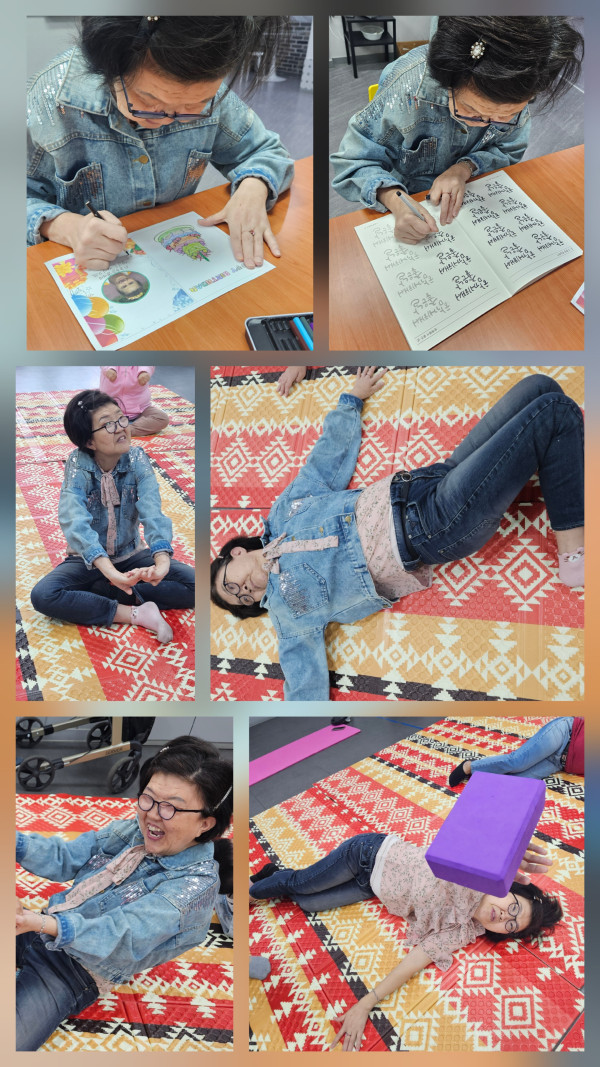 오늘 운동은 상체의 유연성을 기르는 동작에 집중하며 어깨, 허리를 시원하게 풀었습니다. 다들 미간에 힘을 주며 억소리, 영차소리 다양한 소리를 내며 굳어진 몸을 스트레칭하고 개운하게 센터로 돌아왔어요.