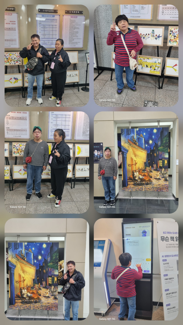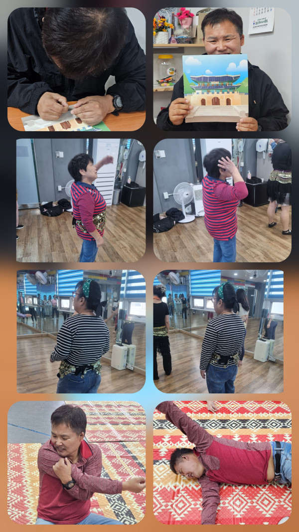2025.10.21(화)주간활동서비스 4그룹 활동진행 페이지 정보 조회 : 18회 작성일 25-10-21 17:32 SNS 공유 : 본문 오전 광화문스티커북붙이기 활동하고 어댑핏활동으로 복근만들기와 어깨강화운동을 하고 다른이용자들은 밸리댄스활동으로 유연성을 기르고 오후에는 구포도서관에서 보고 싶은 웹툰책 골라보고 그림책 활동지 색칠하기 활동 하고 왔어요 이전글2025.10.21(화)주간활동서비스 1그룹 활동진행 25.10.21 다음글2025.10.21.(화)주간활동서비스 5그룹 활동진행 25.10.21 목록