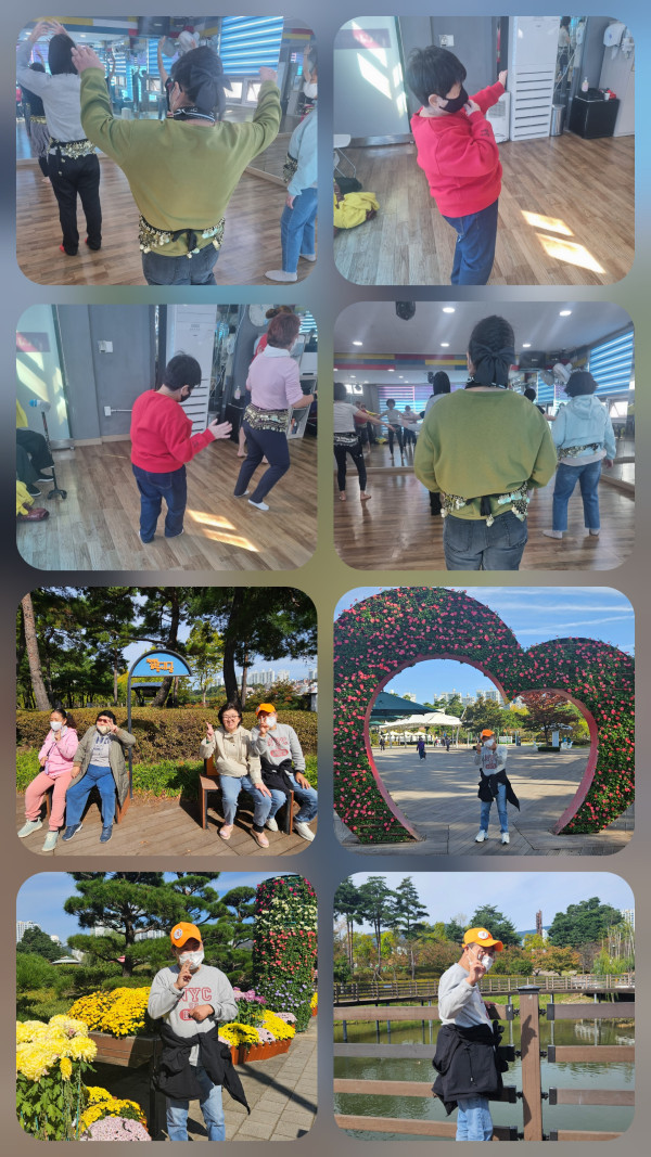 오전 밸리댄스로 몸을 풀고 다른이용자는 시민공원으로 나들이 나가 국화꽃전시도 보고 공원 주변 산책하고 왔어요