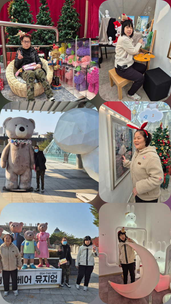 2025.11.26(수)주간활동서비스 1그룹 활동진행 페이지 정보 조회 : 5회 작성일 25-11-26 18:21 SNS 공유 : 본문 오전 노래교실에서 애창곡 불러보고 강사님 노래세 ㅅ?ㄴ나게 춤추고 오후 경주 바니베어 뮤지엄 구경가 다양한 곰인형과 토끼인형으로 꾸민 작은세상 구경하고 포토존에서 사진도 찍었어요 이전글2025. 11. 26(수)주간활동서비스 4그룹 활동진행 25.11.26 다음글2025.11.26.(수)주간활동서비스 5그룹 활동진행 25.11.26 목록