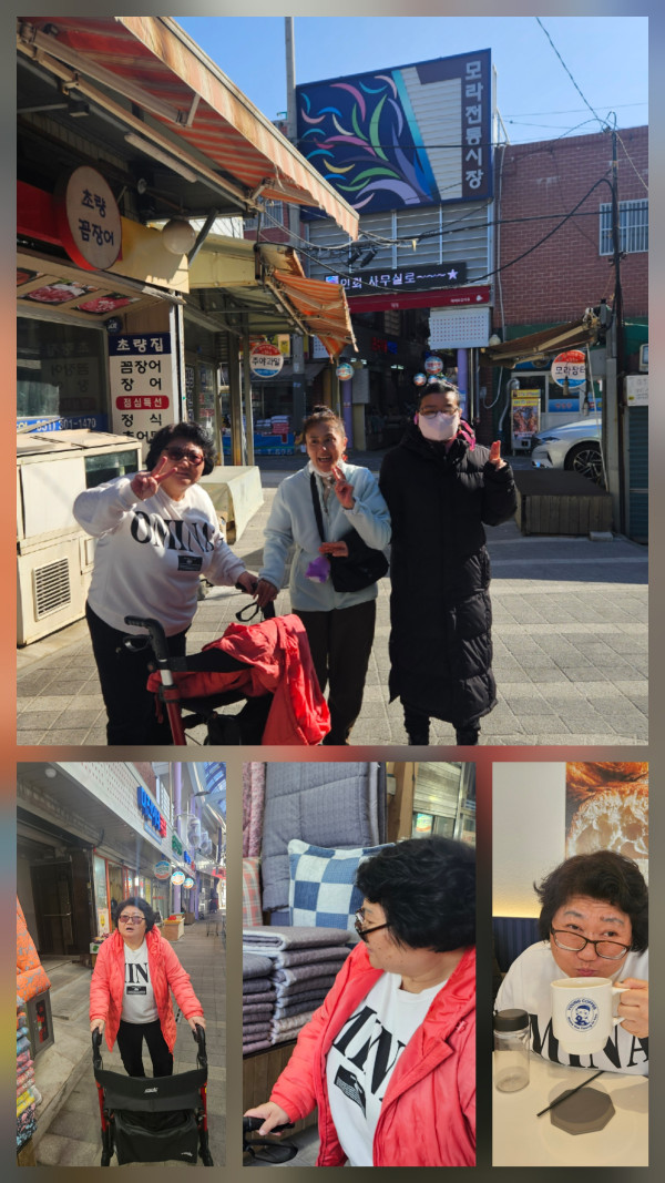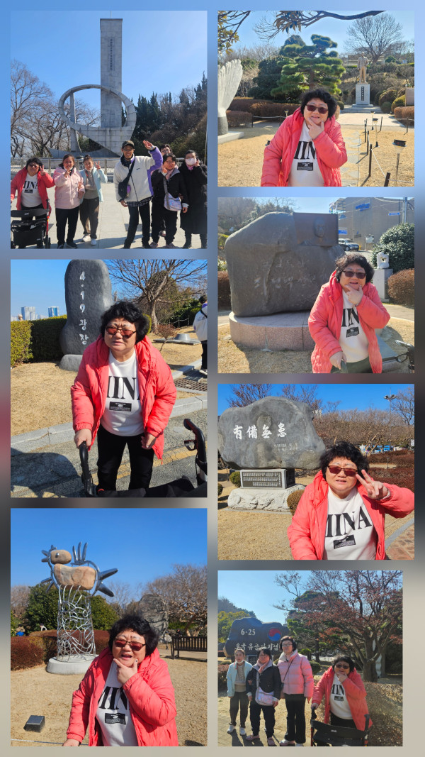 설연휴 푹쉬고 만난 우리 이용자분은 싱글벙글 웃음을 머금고 연휴동안 있었던 일을 이야기해 주셨어요. 이야기를 들으며 오전활동으로 센터 근처에 있는 덕포시장으로 향했습니다. 덕포시장까지 가는 길을 오늘따라 가볍게 또 쉬지 않고 가서 칭찬을 해드렸더니 더 씩씩하게 발걸음을 옮기셨답니다~ 시장구경도 하고 티타임하며 몸을 녹인 후 맛있는 점심을 먹고 오후에는 민주공원으로 향했어요. 4.19 민주혁명 희생자 위령탑과 영령봉안소를 보고 독립운동가 소해 장건상선생 동상도 보았어요. 또 독립투사 최천택선생 기념비와 각종 조형물들을 감상해보는 시간을 가졌답니다~ 날이 따뜻하여 외부활동하기에 더없이 좋은 날씨였어요. 함께 즐거운 시간 보내고 돌아왔습니다:)