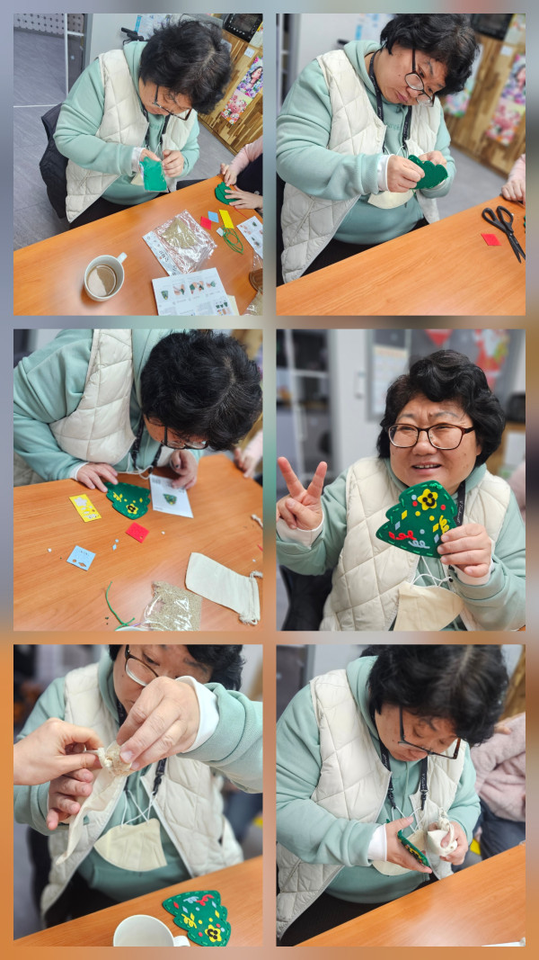 오늘 오전은 손난로 만들기 활동을 해보았어요~ 예쁜 모양의 천을 바느질 한 후 알록달록 모양을 붙여 디자인했어요. 현미곡물을 전자렌지에 돌려 반영구적으로 쓸 수 있는 손난로인데 전자렌지에 모두 돌린뒤 따뜻한 곡물을 손에 쥐고 행복해 하셨답니다! 점심을 먹고 오후에는 실내동물원을 갔어요. 소동물부터 알파카, 사슴, 염소등 대동물까지 아주 많은 동물들이 있었고 먹이도 주고 직접 만져보며 행복해하셨어요~ 쥐를 손에 쥐자 눈을 질끈 감는 우리 이용자분~ 처음보는 모습에 귀엽기도하고 슬며시 웃음이 났답니다. 2시간동안 동물들과 즐거운시간 보내고 센터로 돌아왔어요:)