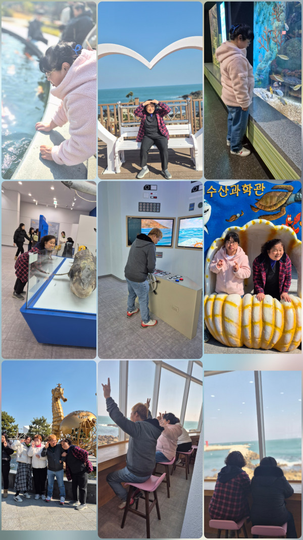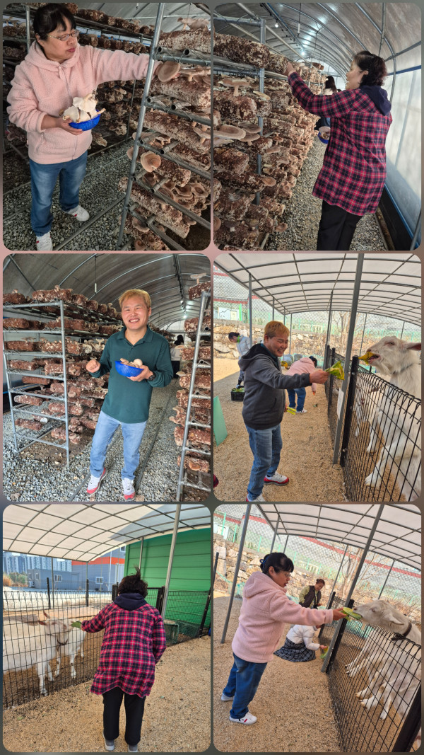 2026.2.20(금) 주간활동서비스 1그룹 활동진행 페이지 정보 조회 : 4회 작성일 26-02-20 19:18 SNS 공유 : 본문 오전 기장 버섯공장 체험학습 다녀왔어요 버섯도 따고 버섯피자도 만들고 염소랑 토끼에게 먹이주기 체험도 했어요 오후 수산과학관 구경하고 음료마시며 바다도 구경했어요 이전글2026. 2. 20(금)주간활동서비스 4그룹 활동진행 26.02.20 다음글2026.2.20(금) 주간활동서비스 7그룹활동잔행 26.02.20 목록