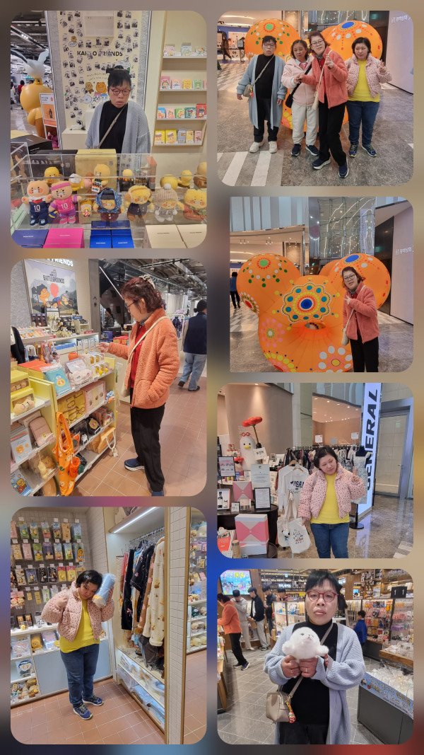 2026. 2. 20(금)주간활동서비스 4그룹 활동진행 페이지 정보 조회 : 4회 작성일 26-02-20 21:03 SNS 공유 : 본문 오전 서당골공원에서 주변 산책 하고 운동기구로 근력운동 하고 배드민턴도 같이 하고 즐거운 시간 보내고 왔어요 오후에는 백화점 구경가서 팝업 물건들도 구경하고 좋아하는 캐릭터와 사진도 찍고 예쁜옷들도 구경하고 힐링하고 왔어요 이전글2026. 2. 20(금)주간활동서비스 8그룹 활동진행 26.02.21 다음글2026.2.20(금) 주간활동서비스 1그룹 활동진행 26.02.20 목록
