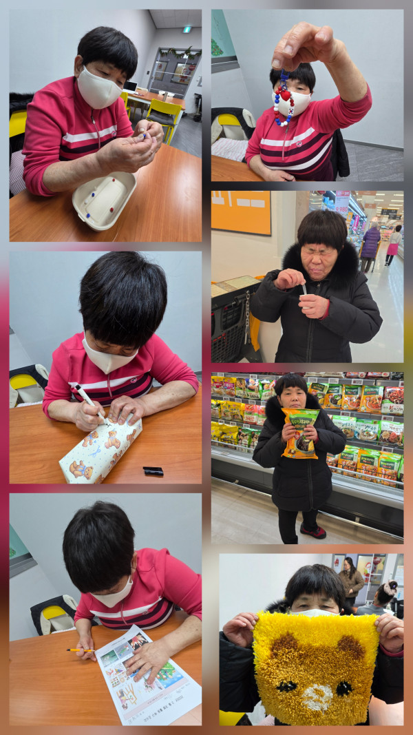 2026.2.24(화)주간활동서비스 7그룹활동진행 페이지 정보 조회 : 0회 작성일 26-02-24 17:42 SNS 공유 : 본문 오전 욕구조사 및 새밀선물포장 오후 이마트 다음글2026. 2. 24(화)주간활동서비스 4그룹 활동진행 26.02.24 목록