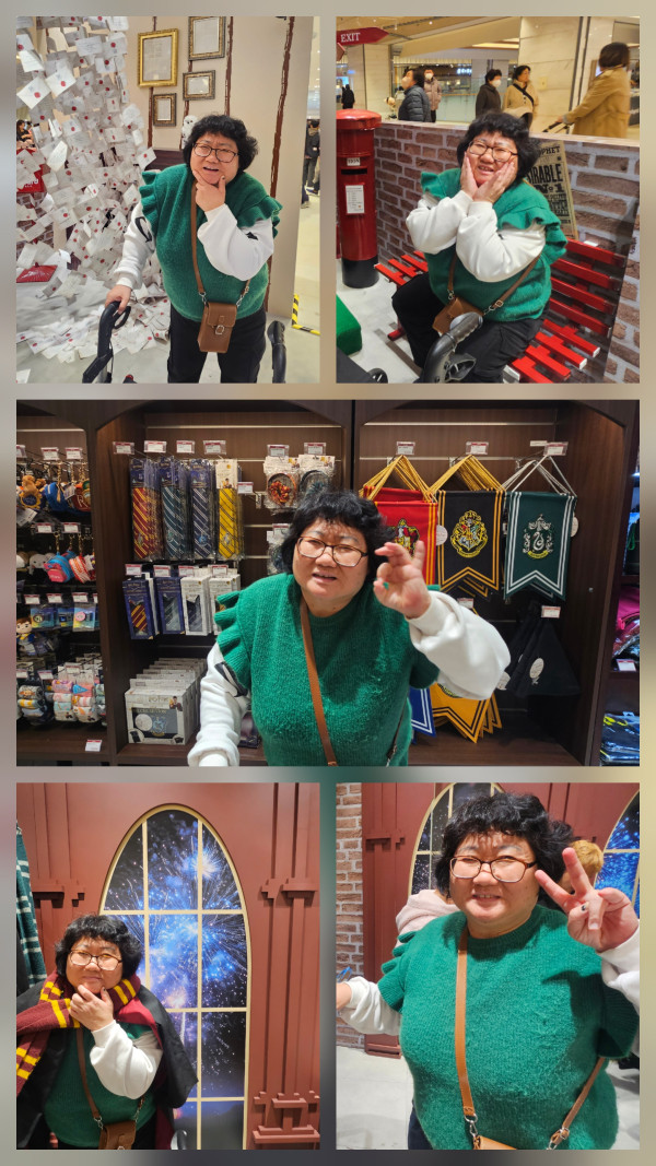 오전 모라3단지에 있는 서당골공원으로 운동을 갔습니다. 날씨가 조금 쌀쌀하고 흐렸지만 운동기구를 열심히 타고 주변을 걷다보니 금방 더워졌어요~ 오전에 열심히 땀을 빼고 오후에는 롯데백화점 부산본점에서 열리는 해리포터 팝업 스토어를 방문했어요. 들어가자마자 느껴지는 마법세계 느낌!! 지팡이들고 '익스펙토 펙트로눔'도 외쳐보고 그리핀도르 기숙사 가운을 입고 사진도 찍어보았습니다. 가끔 지하철을 탈때마다 호그와트로 향하는 길처럼 마법세계로 갈수있는 통로가 있다면 어떤 기분일까 상상해보는데 팝업 스토어덕에 또 상상의 날개를 펼쳐볼 수 있었어요. 재미있는 시간 보내고 돌아왔습니다:)