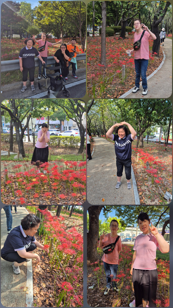 2025.10.1(수) 주간활동서비스 1그룹 활동진행 페이지 정보 조회 : 29회 작성일 25-10-01 17:49 SNS 공유 : 본문 오전 노래교실에서 동네오빠 노래 복습및 신청곡 불러보는 시간을 가지고 오후 김해김해 활천 꽃무릇 공원 산책하며 꽃구경과 사진찍기 활동했어요 이전글2025.10.1.(수)주간활동서비스 5그룹 활동진행 25.10.01 다음글2025.10.1(수) 주간활동서비스 3그룹 활동진행 25.10.01 목록