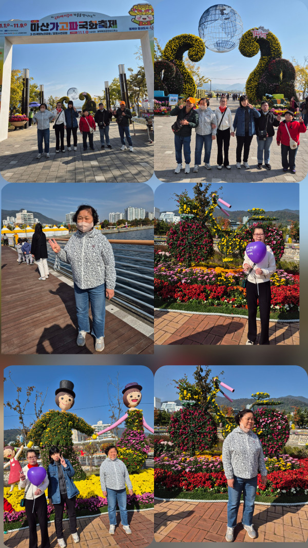 2025.11.6(목)주간활동서비스 1그룹 활동진행 페이지 정보 조회 : 33회 작성일 25-11-06 17:55 SNS 공유 : 본문 마산 가고파국화축제 다녀왔어요 다양한 꽃장식 구경하고 바다도 보고 사진도 찍으며 즐겁게 보냈네요 이전글2025.11.7(금) 주간활동서비스 1그룹 활동진행 25.11.07 다음글2025. 11. 6(목)주간활동서비스 4그룹 활동진행 25.11.06 목록