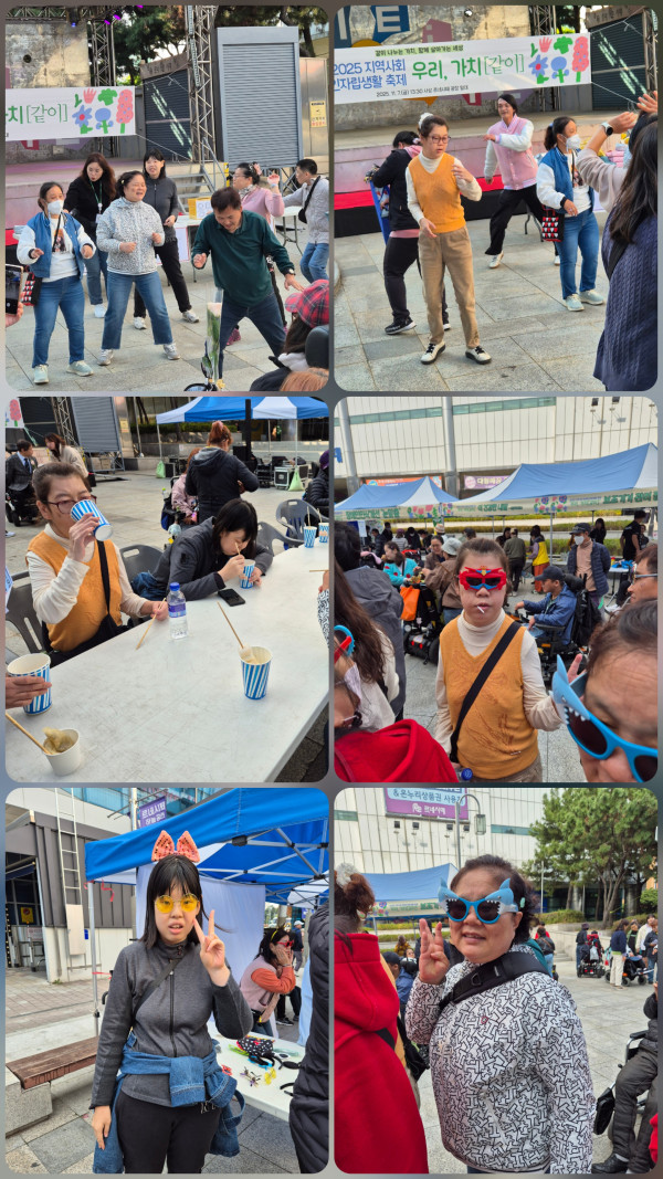 2025.11.7(금) 주간활동서비스 1그룹 활동진행 페이지 정보 조회 : 28회 작성일 25-11-07 17:04 SNS 공유 : 본문 오전 벨리댄스 수업에 참여하고 오후엔 센터 축제에 참여하여 다양한 체험활동도 하고 만두와 어묵 등 먹거리도 먹고 공연도 봤어요 이전글2025.11.7(금) 주간활동서비스 3그룹 활동진행 25.11.07 다음글2025.11.6(목)주간활동서비스 1그룹 활동진행 25.11.06 목록