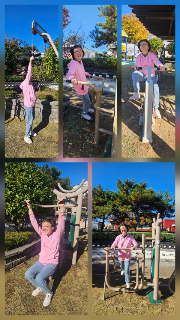 모두 운동기구앞에 서서 하나씩 운동하고 몸을 풀어보았습니다.