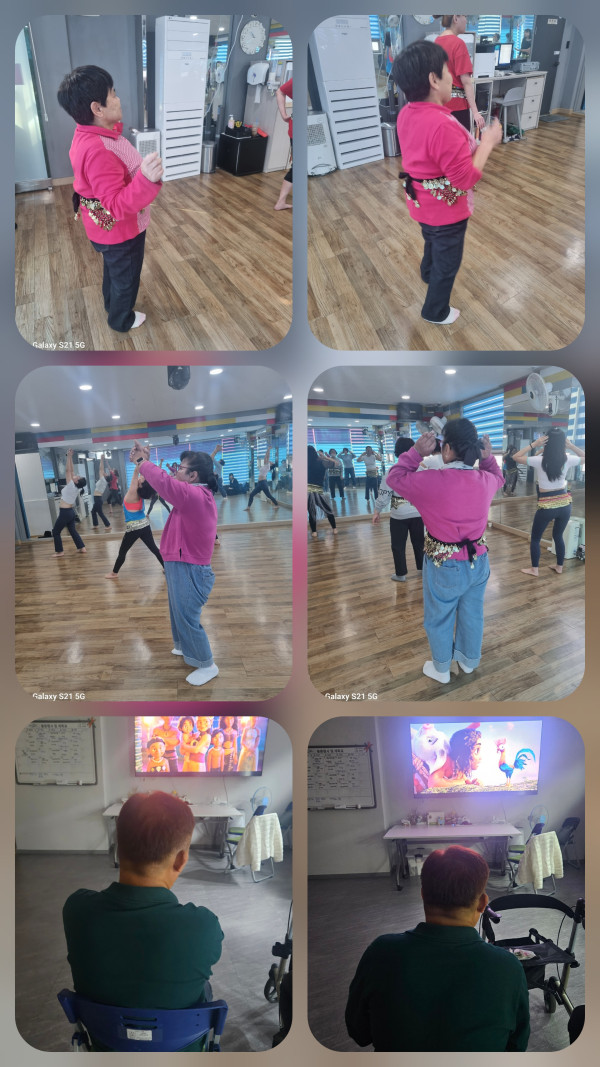 2025. 11.13(목)주간활동서비스 4그룹 활동진행 페이지 정보 조회 : 3회 작성일 25-11-13 17:47 SNS 공유 : 본문 오전 밸리댄스 활동으로 유연성을 기르고 다른이용자는 '모하나2'영화관람하고 오후에는 열대우림체험농장에서 다양한 파충류와 물고기, 동물, 식물들 구경 하고 직접 먹이도 주고 만져도 보고 사진도 찍고 즐거운 체험활동하고 왔어요 이전글2025.11.13(목) 주간활동서비스 2그룹 활동진행 25.11.13 다음글2025.11.13(목)주간활동서비스 1그룹 활동진행 25.11.13 목록