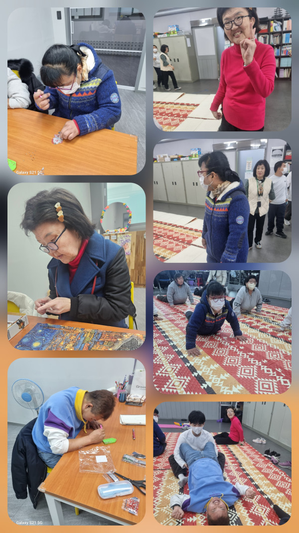 2025. 12. 2(,화)주간활동서비스 4그룹 활동진행 페이지 정보 조회 : 1회 작성일 25-12-03 10:46 SNS 공유 : 본문 오전 키링보석십자수와 퍼즐 맟추기 활동을 하고 어댑핏활동으로 근럭을 키우고 오후 다양한 재료와 조명을 이용하여 트리만들기 활동을 했어요 다음글2025.12.2(화) 주간활동서비스 2그룹 활동진행 25.12.02 목록