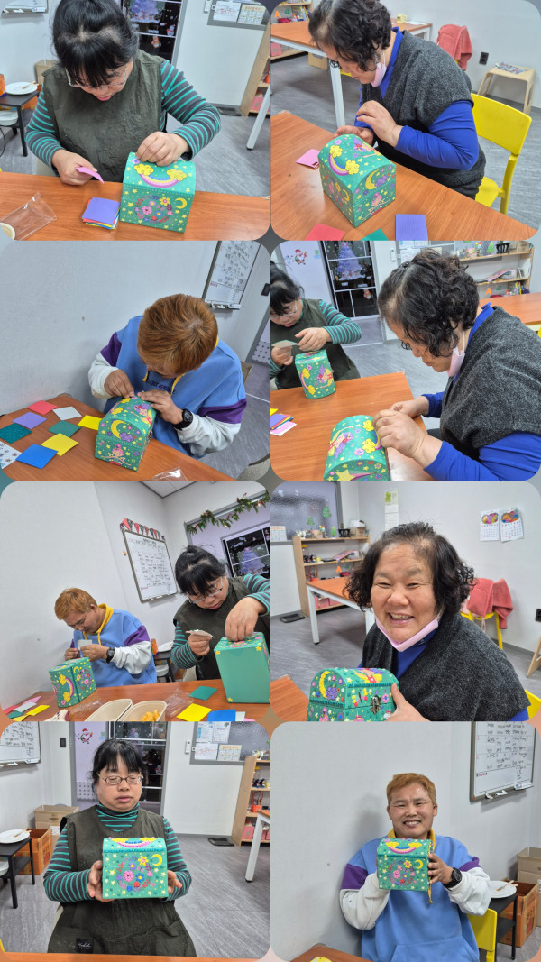2026.1.20(화)주간활동서비스 1그룹 활동진행 페이지 정보 조회 : 159회 작성일 26-01-20 18:28 SNS 공유 : 본문 오전 어댑핏 활동했어요 여러 다양한 기구로 근력운동과 신체단련 했어요 오후 보석함 만들기 했어요 꾸미기 재료를 이용하여 예쁜 보석함 완성했어요 이전글2026. 1. 20(화)주간활동서비스 4그룹 활동진행 26.01.20 다음글2026.1.20 (화)주간활동서비스 6그룹 활동진행 26.01.20 목록