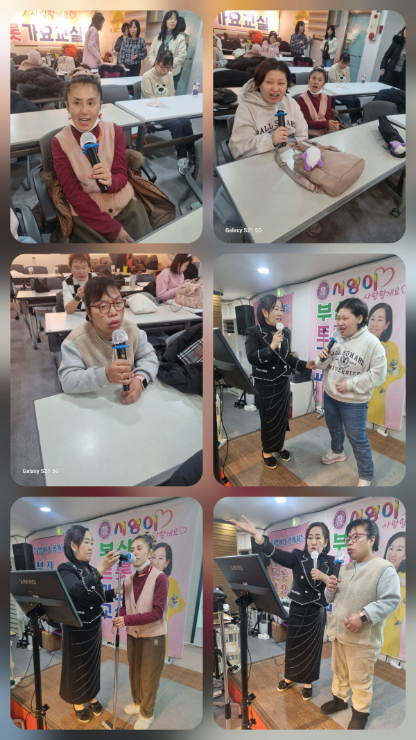 2026. 1. 21(수)주간활동서비스 4그룹 활동진행 페이지 정보 조회 : 134회 작성일 26-01-21 18:31 SNS 공유 : 본문 오전 트롯노래교실에서 다같이 배운 노래 부르고 각자 신청곡 부르고 오후에는 실내 동물원으로 활동 나가 직접 동물들도 만져 보고 먹이도 주고 동물들과 직접 교감하는 시간을 가지고 왔어요 이전글2025.1.22(목)주간활동서비스 3그룹 활동진행 26.01.22 다음글2026.1.21(수) 주간활동서비스 1그룹 활동진행 26.01.21 목록