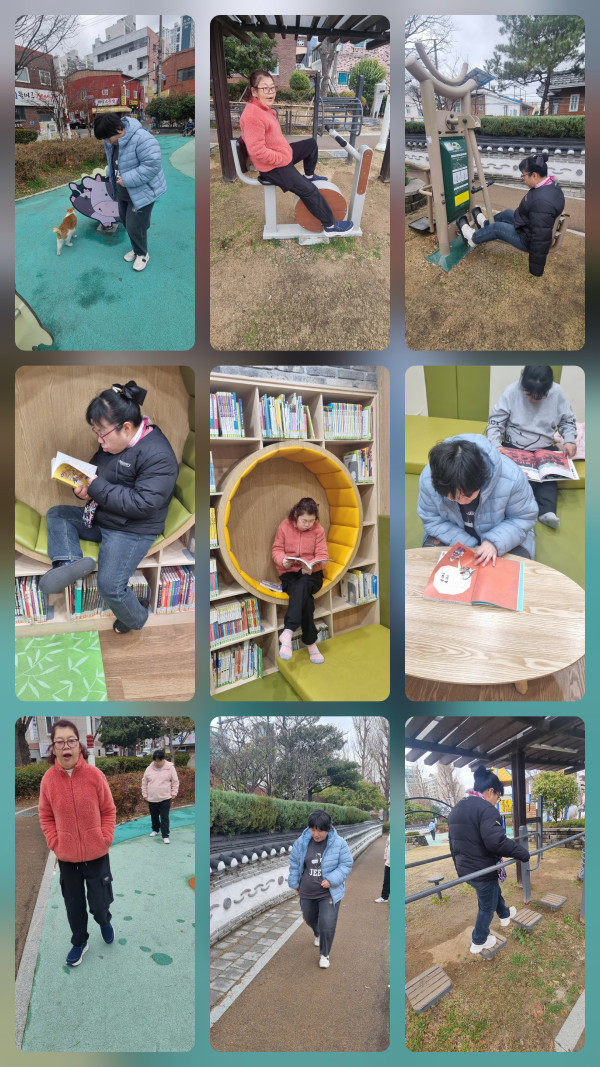2026. 3. 3(화)주간활동서비스 4그룹 활동진행 페이지 정보 조회 : 5회 작성일 26-03-03 16:58 SNS 공유 : 본문 오전 어댑핏 활동으로 몸을 풀고 바느질을 이용하여 가방만들기를 하고 오후에는 고동바위공원으로 산책을 나가 운동을 하고 도서관에 읽고 싶은 책을 읽고 왔어요 이전글2026.3.3(화)주간활동서비스 7그룹활동진행 26.03.03 다음글2026.3.3.(화)주간활동서비스 5그룹 활동진행 26.03.03 목록