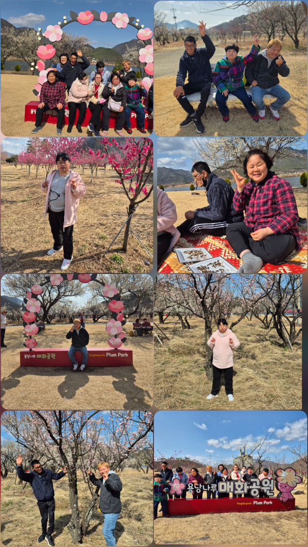 2026.3.4(수) 주간활동서비스 1그룹 활동진행 페이지 정보 조회 : 4회 작성일 26-03-04 18:06 SNS 공유 : 본문 오전 노래교실에서 새노래 13579배워 불러보는 시간을 가지고 오후 용당나루 매화공원 방문하여 산책및 꽃과 함께 사진찍기함 이전글2025. 3. 4(수)주간활동서비스 4그룹 활동진행 26.03.04 다음글2026.3.4.(수)주간활동서비스 5그룹 활동진행 26.03.04 목록