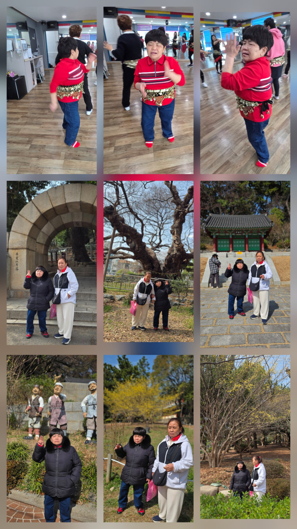 2026.3.6(금) 주간활동서비스 7그룹활동진행 페이지 정보 조회 : 5회 작성일 26-03-06 16:43 SNS 공유 : 본문 오전 밸리댄스 오후 수영사적공원 이전글2026.3.6.(금)주간활동서비스 5그룹 활동진행 26.03.06 다음글2026. 3.6(금) 주간활동서비스 3그룹 활동진행 26.03.06 목록
