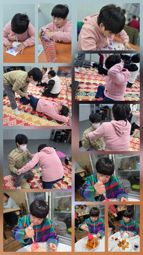 2026.3.10(화) 주간활동서비스 7그룹활동진행 페이지 정보 조회 : 0회 작성일 26-03-10 18:21 SNS 공유 : 본문 오전 생일선물 포장 & 어댑핏 오후 치킨 만들기 체험 이전글2026.3.10(화)주간활동서비스 1그룹 활동진행 26.03.10 다음글2026.3.10.(화)주간활동서비스 5그룹 활동진행 26.03.10 목록