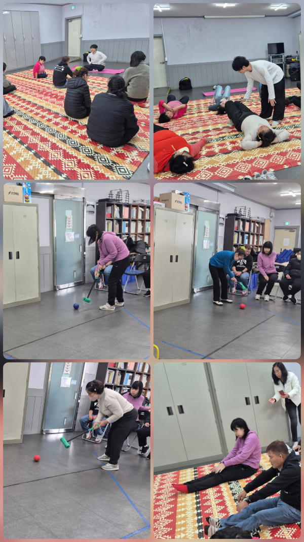 2025.11.18(화)주간활동서비스 1그룹 활동진행 페이지 정보 조회 : 13회 작성일 25-11-18 17:22 SNS 공유 : 본문 오전 어댑핏 운동 참석하여 게이트볼 게임하고 오후 베터 물고기가 사는 어항 꾸미기와 베타에 대해 알아보는 체험 활동 했어요 이전글2025. 11. 18(화)주간활동서비스 4그룹 활동진행 25.11.19 다음글2025.11.18 주간활동서비스 6그룹 활동진행 25.11.18 목록