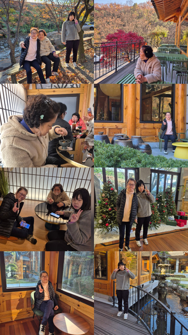 2025.11.19(수)주간활동서비스 1그룹 활동진행 페이지 정보 조회 : 12회 작성일 25-11-19 17:12 SNS 공유 : 본문 오전 노래교실에서 신청곡 불러보는 시간을 가지고 오후 한옥카페 방문하여 가을 단풍 구경및 전통차 마셔보는 활동했어요 이전글2025.11.19(수) 주간활동서비스 3그룹 활동진행 25.11.19 다음글2025.11.19.(수)주간활동서비스 5그룹 활동진행 25.11.19 목록