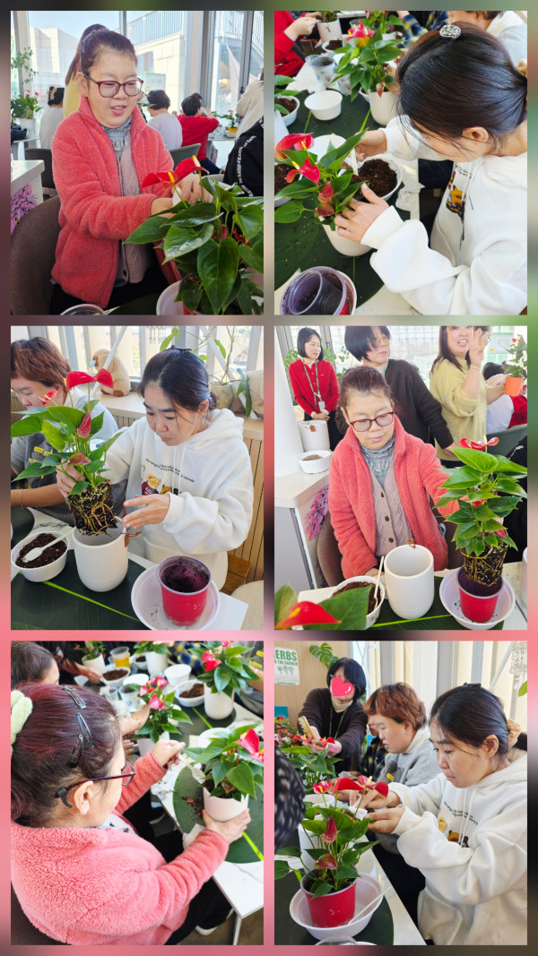 꽃꽂이 수업으로 안수리아 모종 옮겨심기 진행했습니다.