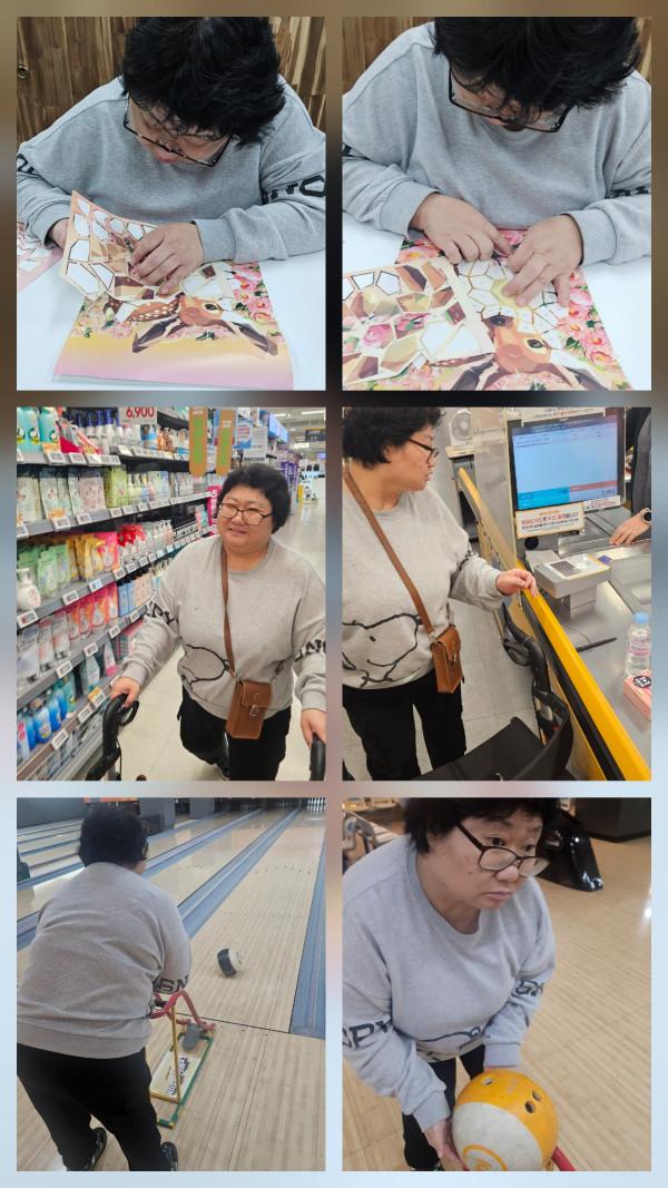 센터에서 맛난 점심을 먹고 오후 프로그램으로 볼링을 치러갔어요. 공이 생각했던대로 굴러가지않아 속상해했지만 마지막까지 최선을 다하고 마무리하였습니다!