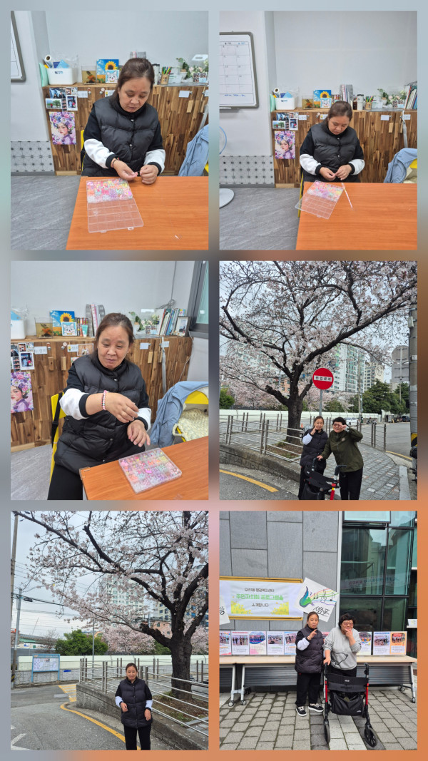 2026.4.1(수) 주간활동서비스 3그룹 활동진행 페이지 정보 조회 : 7회 작성일 26-04-01 16:14 SNS 공유 : 본문 오전 비즈공예, 주변산책 오후 하나로마트 다이소 이전글2026.4.1(수) 주간활동서비스 9그룹 활동진행 26.04.01 다음글2026. 3. 31(화)주간활동서비스 8그룹 활동진행 26.03.31 목록
