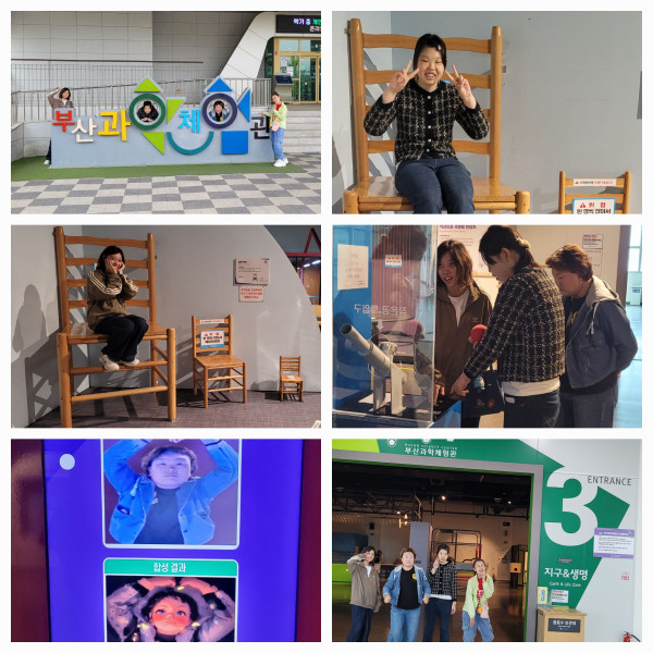 2026417(금)주간활동서비스5그룹 활동진행 페이지 정보 조회 : 32회 작성일 26-04-17 18:46 SNS 공유 : 본문 오전 실내활동 오후 부산과학체험관 이전글2026.4.20(월)주간활동서비스 3그룹 활동진행 26.04.20 다음글2026.4.17(금)주간활동서비스 8그룹 활동서비스 26.04.17 목록