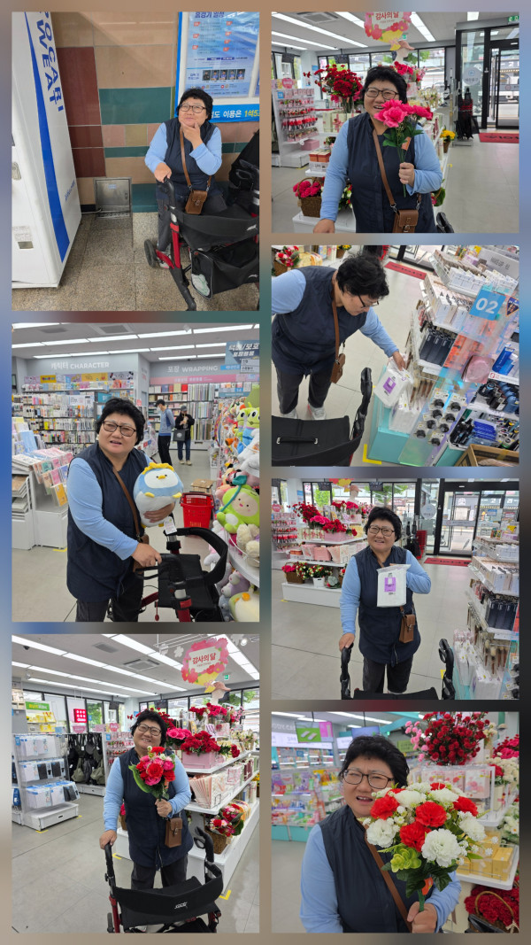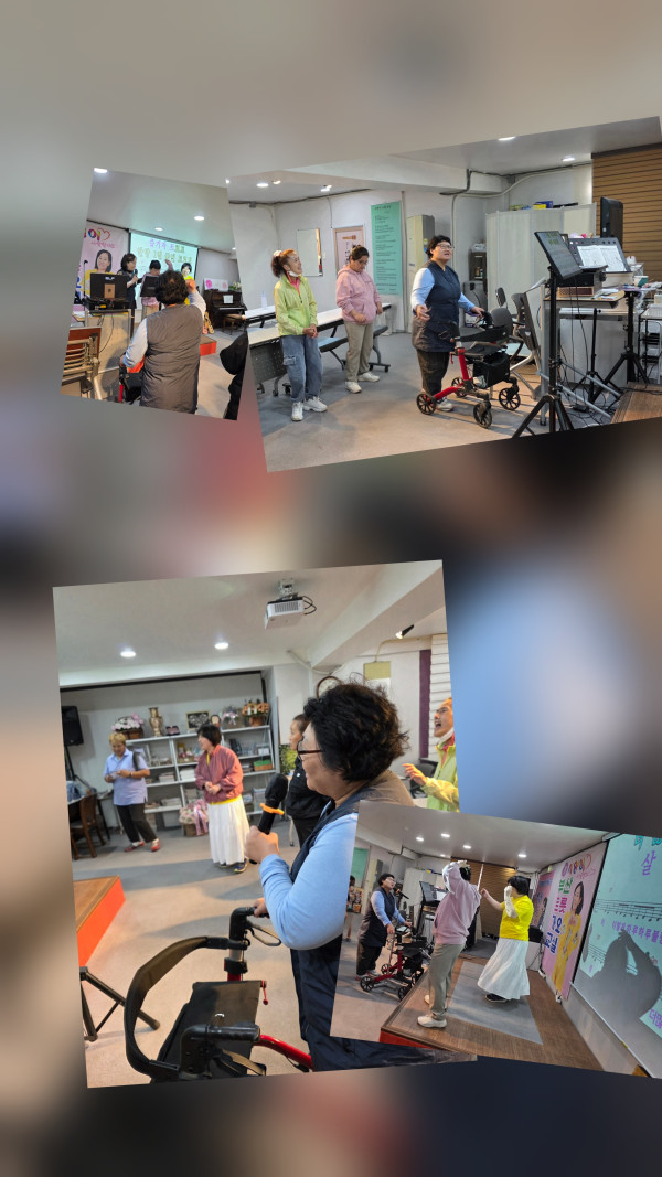 2026.4.23(목) 주간활동서비스 2그룹활동진행 페이지 정보 조회 : 14회 작성일 26-04-23 20:12 SNS 공유 : 본문 오전 노래교실 오후 다이소 이전글2026.4.24(금) 주간활동서비스 8그룹활동진행 26.04.24 다음글2026.4.23(목)주간활동서비스 6그룹 활동진행 26.04.23 목록
