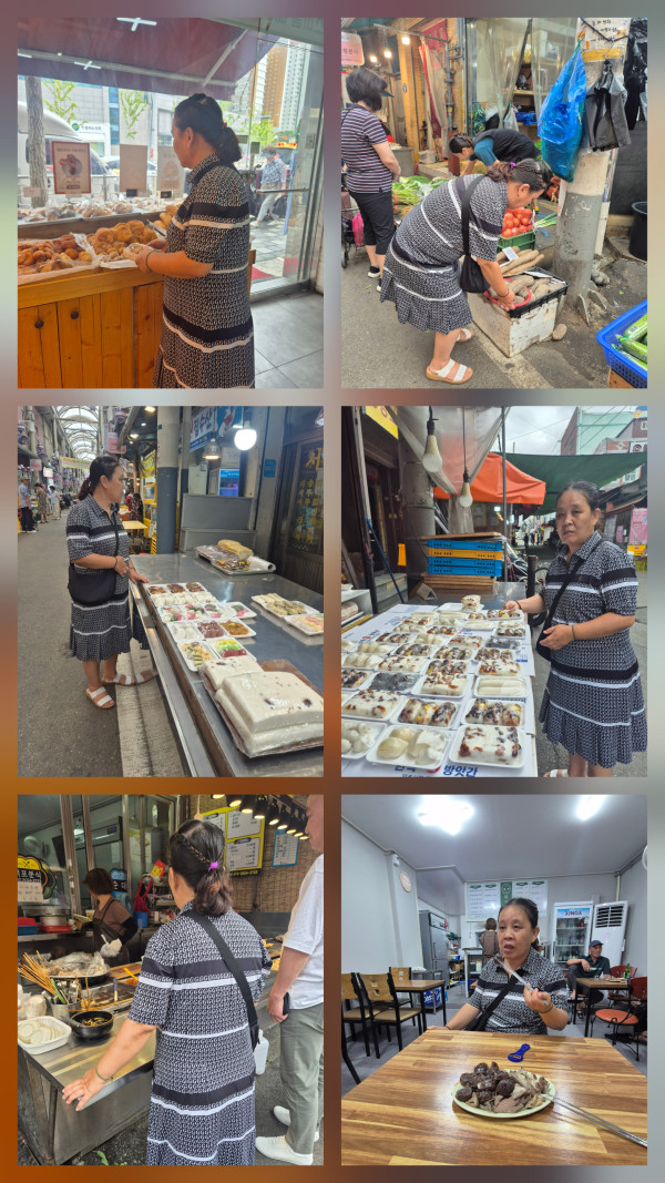 오전에는 덕포시장에가서 다양한 식재료 구경하고 순대도 사서 맛보았습니다