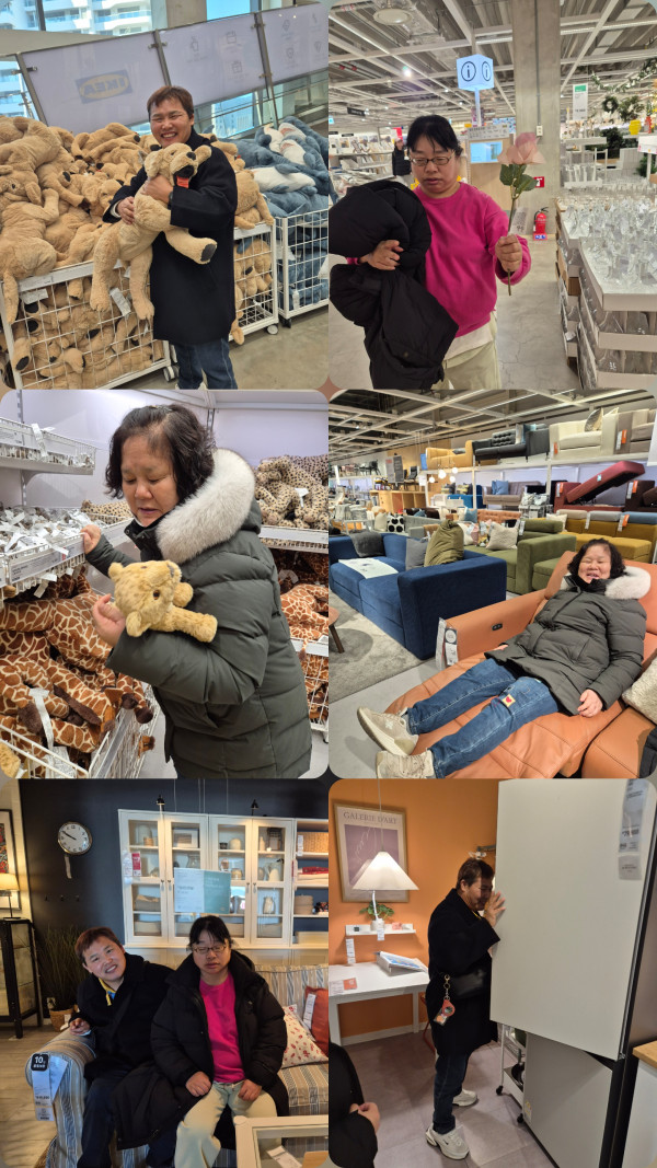 2026.1.8(목) 주간활동서비스 1그룹 활동진행 페이지 정보 조회 : 171회 작성일 26-01-08 19:54 SNS 공유 : 본문 오전 원자력 호보관 둘러보며 다양한 체험활동 하고 오후엔 이케아의 다양한 쇼룸구경및 인테리어 소품 구경했어요 이전글2026.1.9(금) 주간활동서비스 3그룹 활동진행 26.01.09 다음글2026. 1. 8(목)주간활동서비스 4그룹 활동진행 26.01.08 목록