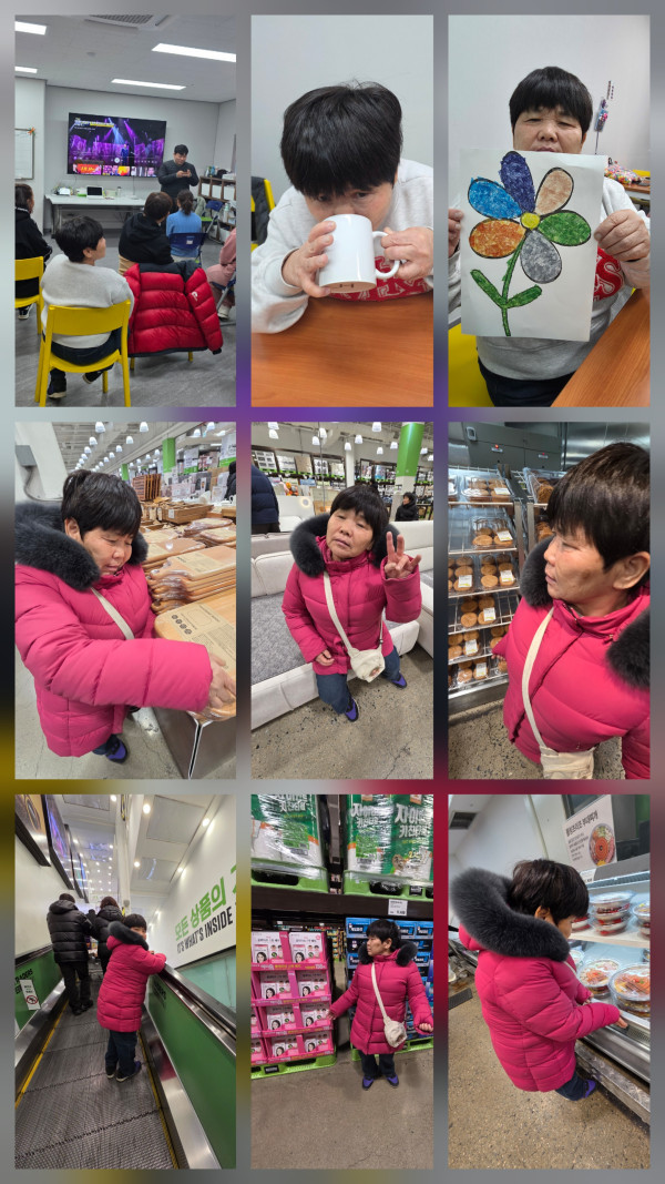 2026.1.2(금)주간활동서비스7그룹활동진행 페이지 정보 조회 : 170회 작성일 26-01-02 16:44 SNS 공유 : 본문 오전 새해 인사 및 교실 정리 티타임 오후 이마트트레이더스 물건 이름 알기 및 사용처 알기 이전글2026.1.2(금) 주간활동서비스 2그룹 활동진행 26.01.02 다음글2026.1.2.(금)주간활동서비스 5그룹 활동진행 26.01.02 목록