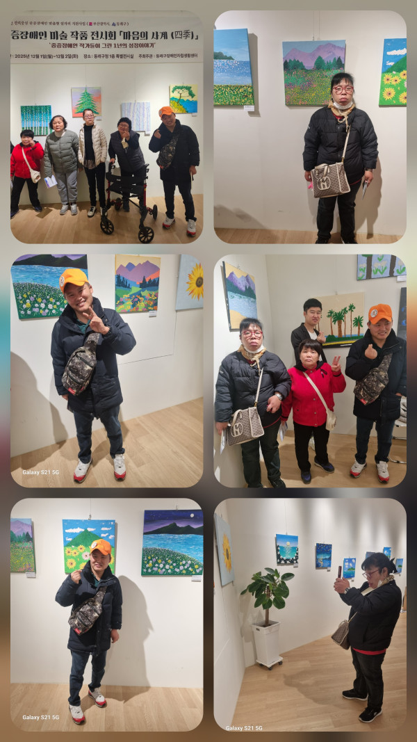 2025. 12. 1(월)주간활동서비스 4그룹 활동진행 페이지 정보 조회 : 3회 작성일 25-12-01 17:17 SNS 공유 : 본문 오전 평화시장으로 크리스마스트리 준비물 구입하고 시장 둘러 보며 구경하고 오후에는 구청에 전시되어 있는 중중장애인 미술전시화 관람하고 작가와 사진도 찍고 왔어요 이전글2025.12.1(월)주간활동서비스 1그룹 활동진행 25.12.01 다음글2025.12.1(월)주간활동서비스 6그룹 활동진행 25.12.01 목록