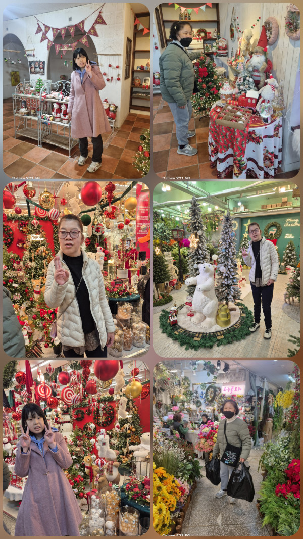 오전 크리스마스 트리용품 구입하러 평화시장 구경갔다왔어요 예쁜 트리들도 보고 사진도 찍고 물품구입도했어요