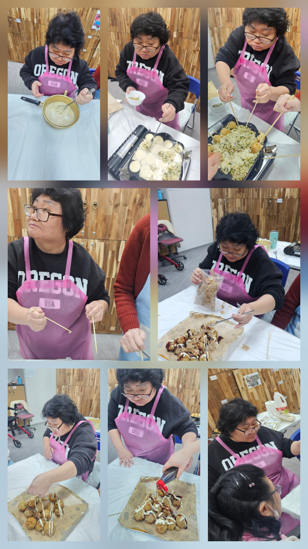 오후에는 요리활동으로 타코야끼만들기를 했습니다. 동그란불판에 반죽을 넣고 요리조리 굴리며 완성되는 타코야끼를 보며 다들 재미있어 했어요~ 함께 먹고 나눠먹으며 행복한 하루보내었습니다^^