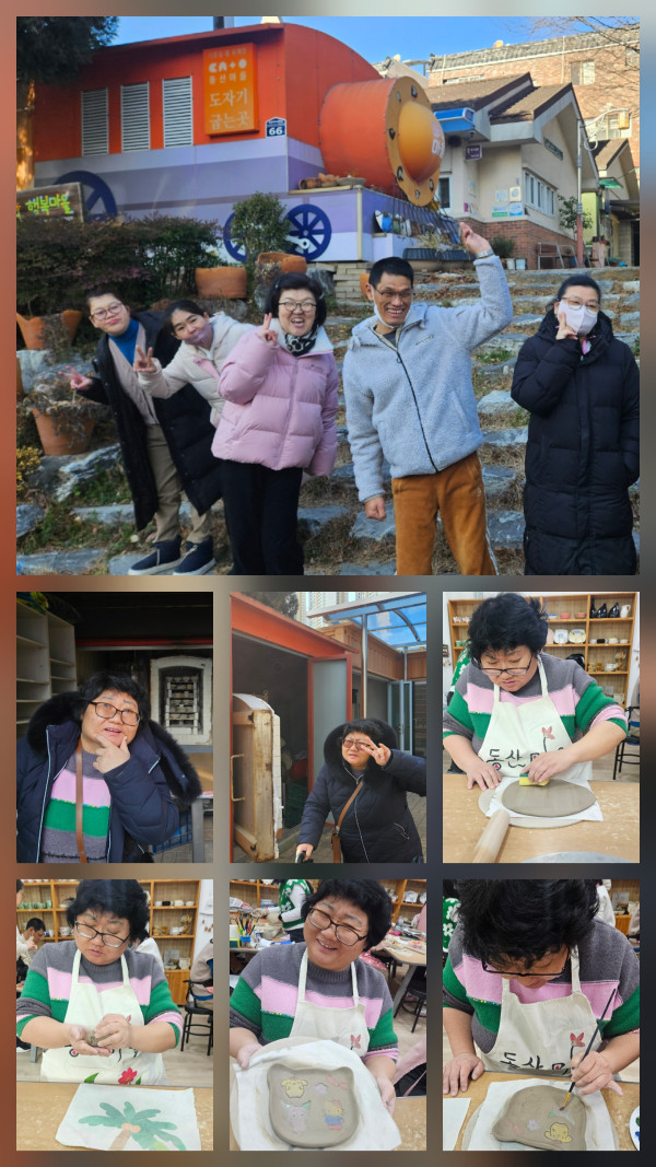 오전 노래교실에서 쿨의 '슬퍼지려 하기 전에'라는 곡을 배우고 다같이 불러보는시간을 가졌어요. 못갖춘마디로 시작되는 곡이어서 시작 타이밍을 잘 잡고 들어갈 수 있도록 상세하게 알려주셨답니다! 모두 시간가는 줄 모르고 열심히 따라부르고 개별 독창을 하였어요~ 오후에는 동래에 있는 도자기 공방을 가서 접시를 만들었답니다. 귀여운 키티접시를 선택한 우리 이용자분은 점토로 키티틀을 만든다음 귀여운 스템프를 찍고 물감으로 색칠한 뒤 완성했답니다. 한달 뒤 어떤 모습으로 예쁜접시를 받게 될지 벌써 기대가 되네요~ 오늘도 즐거운 시간 보내고 왔습니다^^