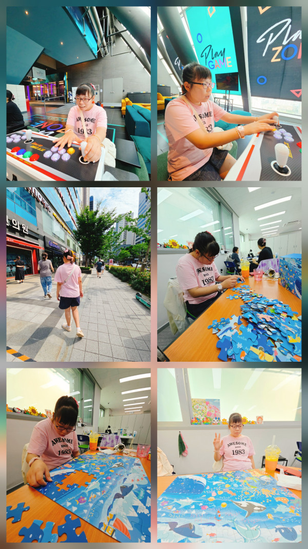 블루스페이스 이스포츠 행사장 방문하여 두더지잡기, 보글보글 등 추억 속의 오락실 게임을 해보는 활동으로 진행하였고 센터 복귀 후 대형 퍼즐 맞추기로 여가 시간 보냈습니다.