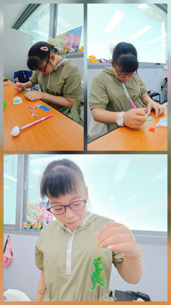 이용자가 좋아하는 공룡모양의 키링을 보석십자수로 꾸며 완성해보는 활동 하였습니다.