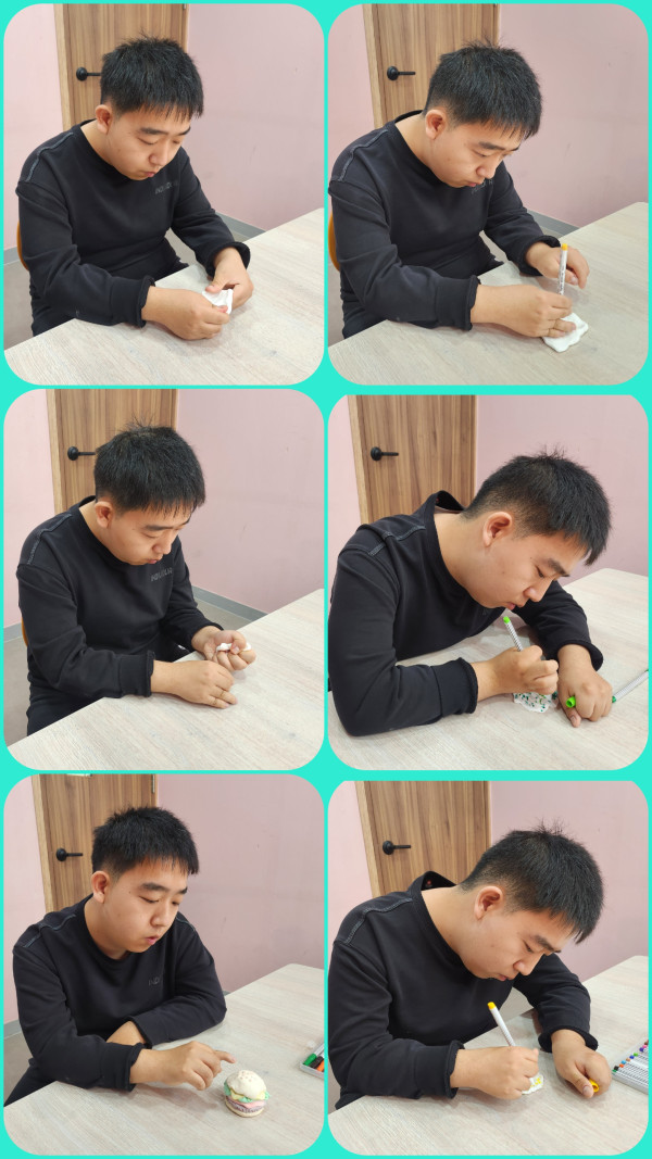 소 근육 및 수행 지속 향상,색 구성 및 모방 능력 향상을 위한 활동을 하였습니다.