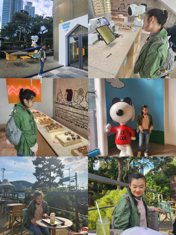 스누피플레이스에서 야외좌석에서 청포도에이드를 맛있게 먹었습니다