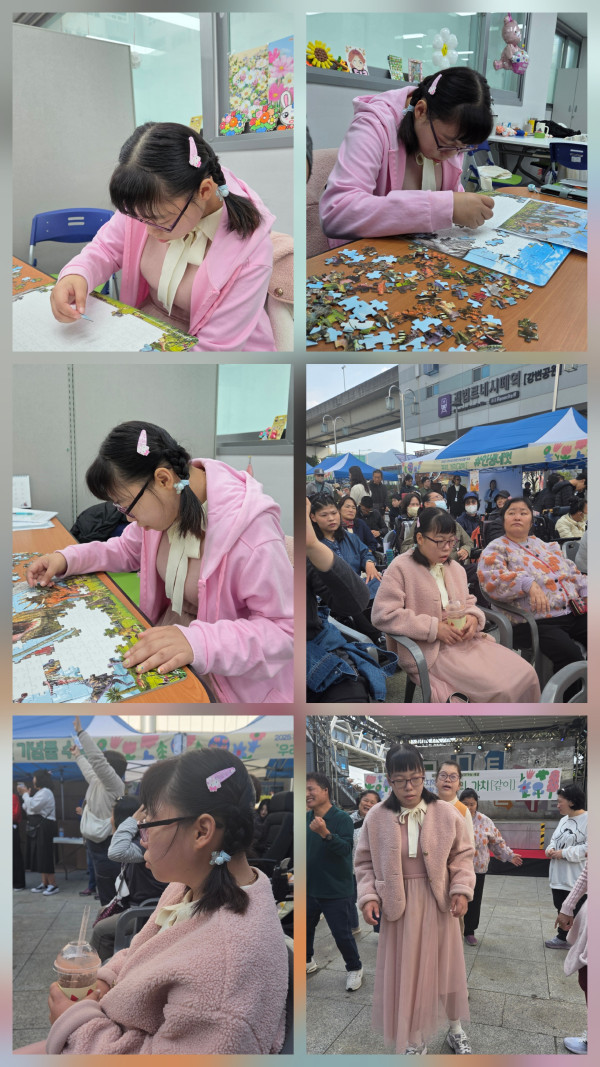 2025.11.7.(금) 최중증통합돌봄서비스 4그룹 활동진행 페이지 정보 조회 : 29회 작성일 25-11-07 17:05 SNS 공유 : 본문 오전활동 공룡퍼즐맞추기 활동했습니다. 오후활동 장애인자립생활축제 다녀왔습니다. 이전글2025. 11. 7. (금) 최중증통합돌봄서비스 5그룹 활동진행 25.11.07 다음글2025. 11. 7.(금) 최중증통합돌봄서비스 1그룹 활동진행 25.11.07 목록