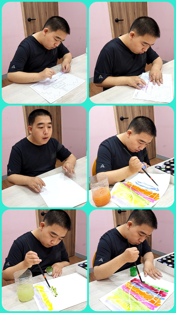 그림을 그리고 색칠을 하며 양손 협응, 눈 떨림,시지각, 형태변별을 훈련하는 활동을 하였습니다.