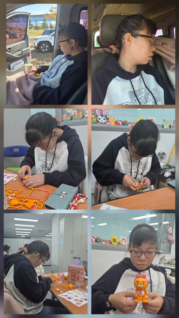 2025.11.11(화) 최중증통합돌봄서비스 4그룹 활동진행 페이지 정보 조회 : 22회 작성일 25-11-11 17:44 SNS 공유 : 본문 오전활동 라이언 조립하기 활동했습니다. 오후활동 삼락생태공원 산책활동 다녀왔습니다. 이전글2025.11.11(화) 최중증통합돌봄서비스 1그룹 활동진행 25.11.12 다음글2025. 11. 11.(화) 최중증통합돌봄서비스 3그룹 활동진행 25.11.11 목록
