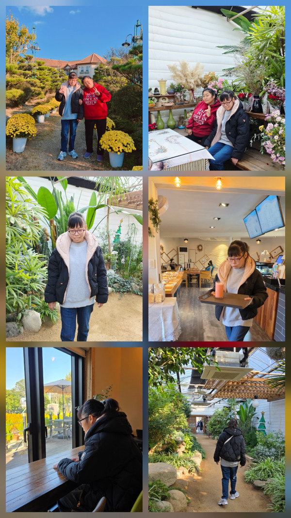 식물원카페 방문하여 멋지게 꾸며진 공원과 하우스를 둘러보고 사진을 찍으며 여가시간을 보내는 활동하였습니다.
