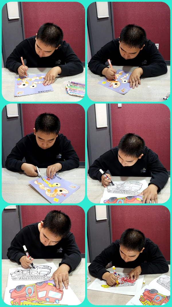 오전에는 심리 치료 센터를 다녀왔습니다.소근육, 손 끝 떨림 조절, 시 지각, 형태 변별 훈련을 하였습니다.