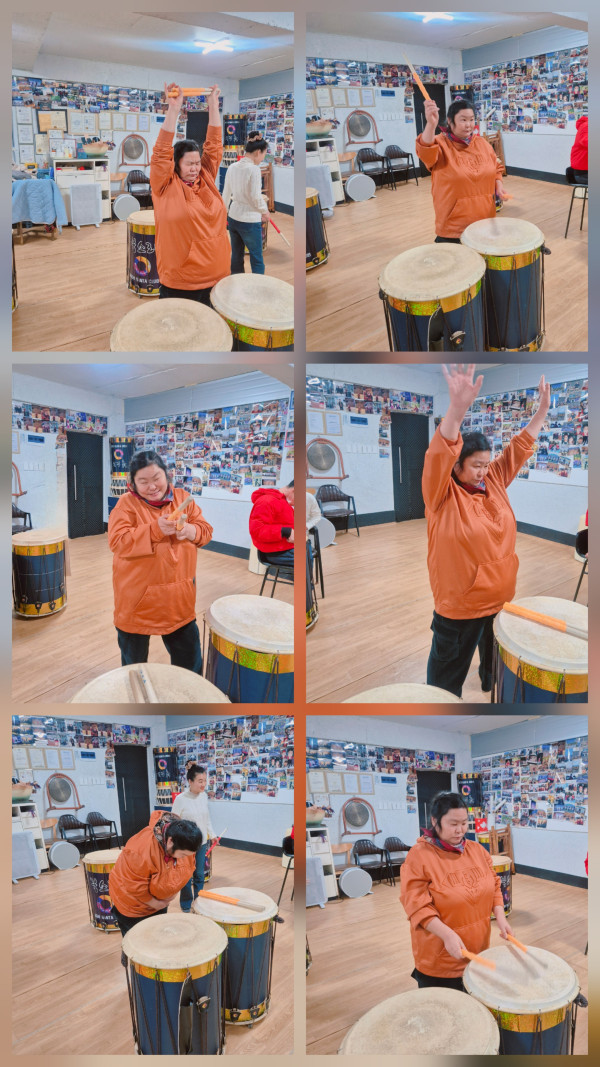 오전에는 북소리난타에 방문하여 음악에 맞춰 북채를 휘두르고 체조를 하는 활동을 하였습니다