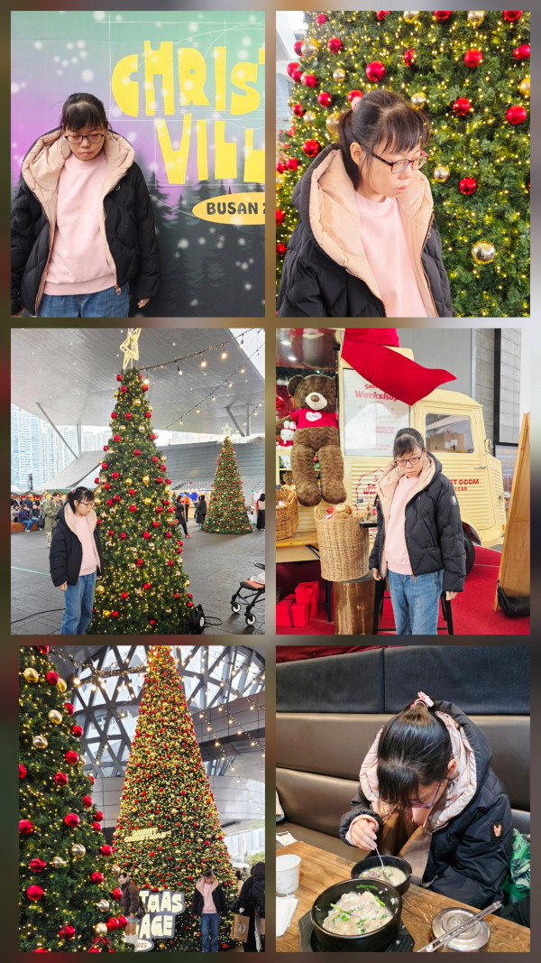 맛있는 순대국밥 한그릇 든든하게 먹고 영화의전당 산타 마을을 돌며 크리스마스 트리와 소풉샵들을 구경하는 활동으로 진행했습니다.